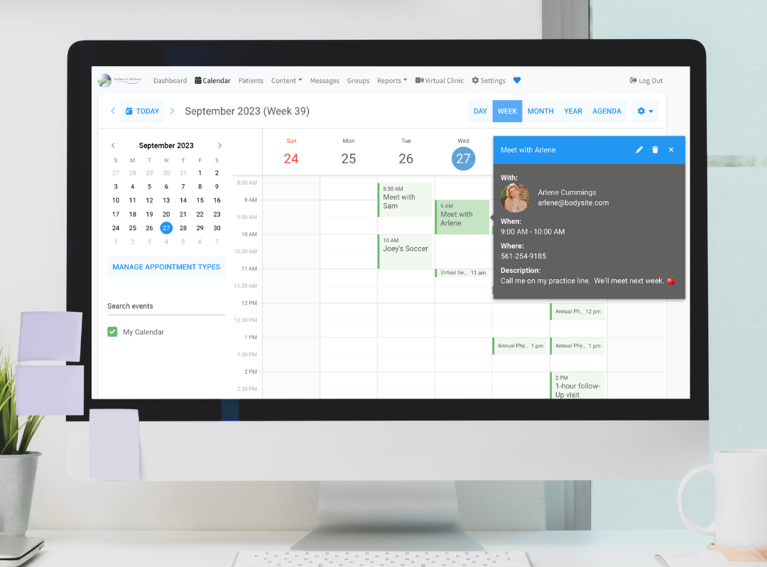 With the new Calendar + Scheduling system, you can book and manage all appointments for your practice in one place, including both in-office and virtual visits, and you can even put personal appointments on your calendar.